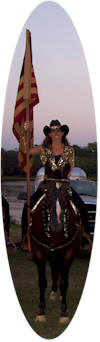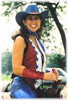 Cheryl DeMent has been involved with horses all of her life and has been an active member of the Silver Dollars from the beginning. She started out as a trick rider for 2 years and now plays a vital role on the drill team. Not only is she a member but also an event coordinator and team organizer. You may see her frequently carry an American Flag along side Penny Henson during the grand opening ceremony. In addition to performing in all the drill team dances, she assists the trick riders and roman riders. This year she plans to use her own horse, Pete the paint. You can always recognize Cheryl no matter what costume she is wearing or horse she is riding by her million dollar smile. |