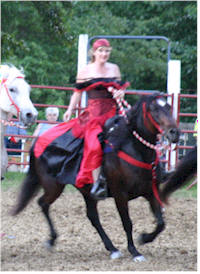 Rita is fulltime member of the Silver Dollars. Her costumes are always a standout and her horse is always fast-moving. She performs in all the drill routines with Bugsy. In 2005 she started trick riding and in 2007 started using her own horse. Click here to check out her trick riding page.